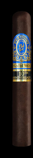 The Perdomo Reserve 10th Anniversary Box-Pressed Maduro is a medium to full-bodied Nicaraguan “puro” blended with a dark, oily 6-year old Cuban-seed Nicaraguan wrapper that has been bourbon barrel-aged for an additional 14 months and is paired with 6-year old Cuban-seed Nicaraguan binder and filler tobaccos to create naturally sweet flavors with hints of dark cocoa and espresso on the finish.